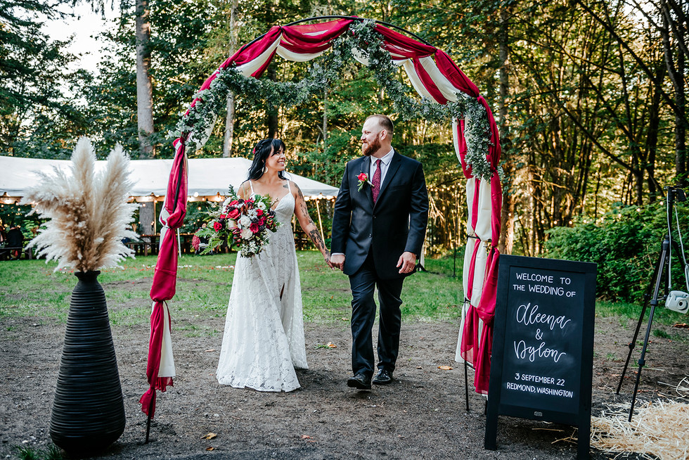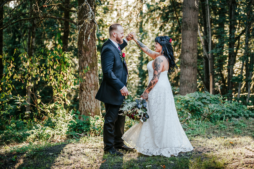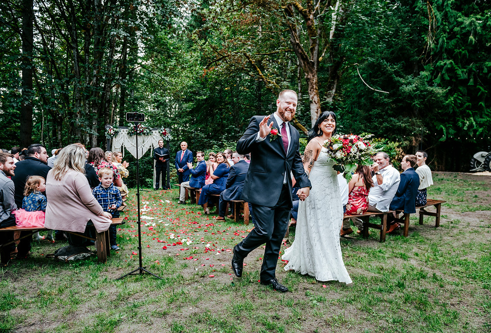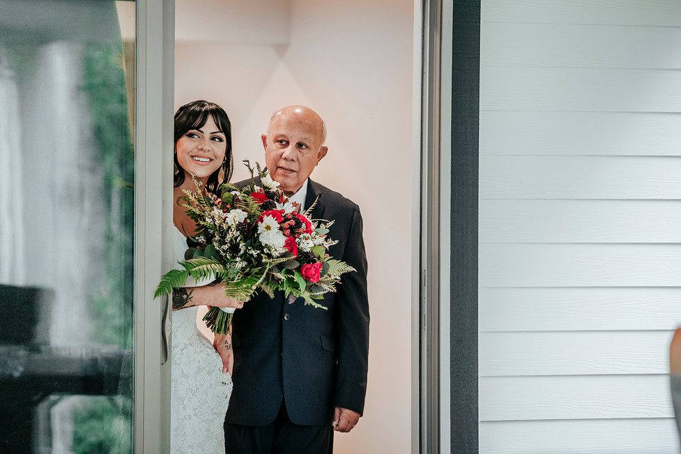 It was another perfect day and perfect setting for Aleena and Dylon's woodsy backyard wedding full of love and laughter. I love the details like the coffin ring box. I also really enjoyed making the bridal bouquet, boutonniere, and corsages.