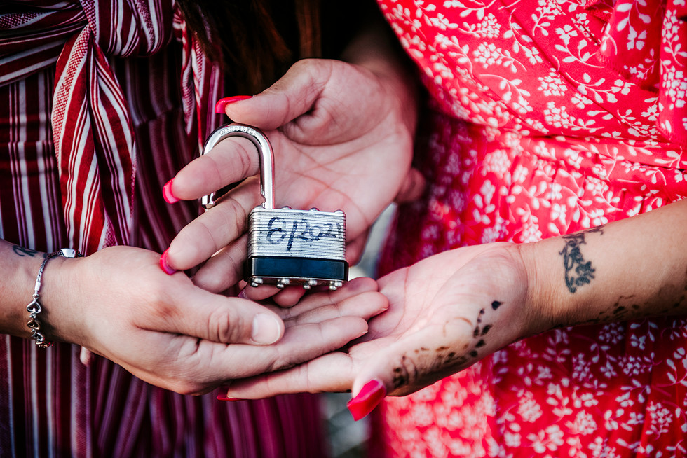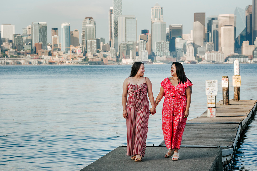 I captured wedding portraits for these two lovely ladies last year and it was a pleasure to capture their one-year anniversary portraits complete with a visit to the locks wall on Alki. See their wedding photos from last year here.