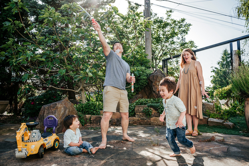 When you have a beautiful garden, why go anywhere else for photos? It was a pleasure to hang out with this family and watch their boys play with flowers, toys and bubbles.