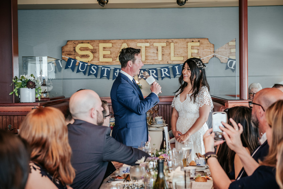 Sneak peek from Angela & Aaron's Mukilteo Lighthouse Park wedding from June. It was a pleasure to meet and work with Angela and Aaron and to meet Angela's mom whom they included in the engagement photos earlier this year. Angela (a friend of my friend, Hong), is also a graphic designer so naturally she had a clear design concept for the wedding and a beautiful and detailed document on how to execute that concept. Hong (who helped with flowers for my wedding) single handedly created all of the floral arrangements for Angela's wedding from the boutonnières to the arch.